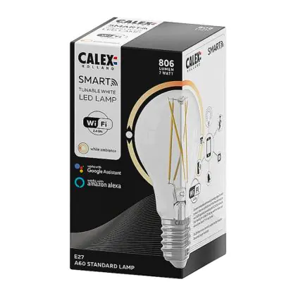 Beschreibung Calex Smart Tuya Wifi E27 Birne Fadenlampe 7W 806lm - 818-830 Abstimmbares Weiß | Dimmbar - Ersatz für 60W