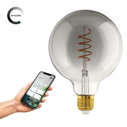 Die Eglo Connect.Z Smart LED Globe E27 Fadenlampe Smokey 4W 150lm - 820 Extra Warmweiß | Dimmbar - Ersatz Für 15W ist eine effiziente E27 LED-Lampe mit Retrodesign und der perfekte Ersatz für Ihre konventionellen 15W Lampen mit E27. Zudem strahlt sie Licht in der Farbtemperatur 2000K - Extra Warmweiß aus und punktet durch eine lange Lebensdauer.
