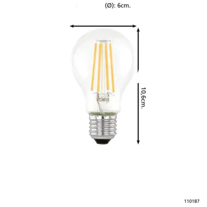Die Eglo LED Birne E27 Fadenlampe Klar 7.3W 806lm - 830 Warmweiß | Ersatz Für 60W ist eine effiziente E27 LED-Lampe mit Retrodesign und der perfekte Ersatz für Ihre konventionellen 60W Lampen mit E27. Zudem strahlt sie Licht in der Farbtemperatur 3000K - Warmweiß aus und punktet durch eine lange Lebensdauer.