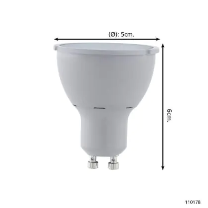 Die Eglo LED-Spot GU10 PAR16 3.4W 400lm 38D - 830 Warmweiß | 3-Stufen Dimmbar - Ersatz Für 57W ist eine effiziente GU10 LED-Lampe und der perfekte Ersatz für Ihre konventionelle Halogenlampe mit 57W und einem GU10-Sockel, bei welchem die zwei Stifte einen Abstand von 10 mm zueinander haben. Zudem strahlt das Produkt Licht in der Farbtemperatur 3000K - Warmweiß aus und punktet durch eine lange Lebensdauer.