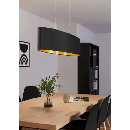 Die Eglo Pendelleuchte Maserlo Stahl Satin-Nickel | Geeignet für 2x E27 sorgt für eine angenehme Ausleuchtung und punktet durch modernes Design. Diese Leuchte ist speziell zur Montage an der Decke vorgesehen.