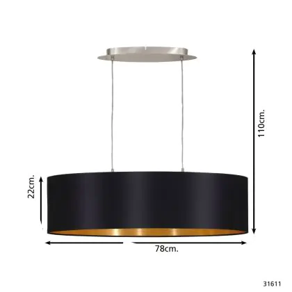 Beschreibung Eglo Pendelleuchte Maserlo Stahl Satin-Nickel | Geeignet für 2x E27