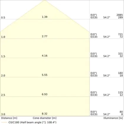 Das LED-Bulkhead kommt mit der Farbtemperatur 3000K - 4000K CCT daher. Als Faustregel gilt: Je niedriger der Kelvinwert, desto gemütlicher wirkt das Licht.