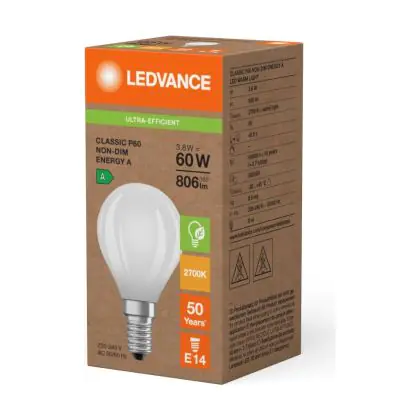 Die Ledvance LED Classic E14 Birne Fadenlampe Matt 3.8W 806lm - 827 Extra Warmweiß | Ersatz Für 60W ist eine effiziente E14 LED-Lampe mit Retrodesign und der perfekte Ersatz für Ihre konventionellen 60W Lampen mit E14. Zudem strahlt sie Licht in der Farbtemperatur 2700K - Extra Warmweiß aus und punktet durch eine lange Lebensdauer.