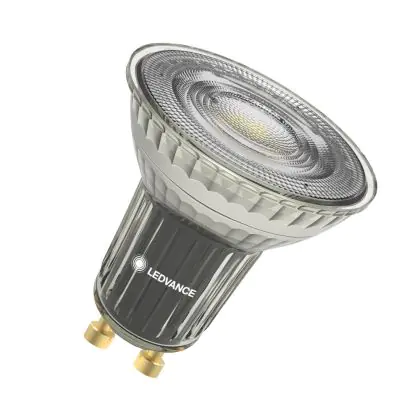 Die Ledvance LED Reflektor GU10 PAR16 6.1W 575lm 36d - 940 Kaltweiß| Dimmbar - Ersatz Für 80W ist eine effiziente GU10 LED-Lampe und der perfekte Ersatz für Ihre konventionelle Halogenlampe mit 80W und einem GU10-Sockel, bei welchem die zwei Stifte einen Abstand von 10 mm zueinander haben. Zudem strahlt das Produkt Licht in der Farbtemperatur aus und punktet durch eine lange Lebensdauer.