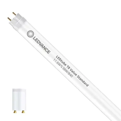 Die T8 LED-Röhren von Ledvance gibt es in verschiedenen Farbtemperaturen: Extra Warmweiß (2.700 K und weniger), Warmweiß (3.000 K), Kaltweiß (4.000 K) und Tageslichtweiß (6.500 K). Diese Röhre strahlt ihr Licht in 4000K - Kaltweiß aus.