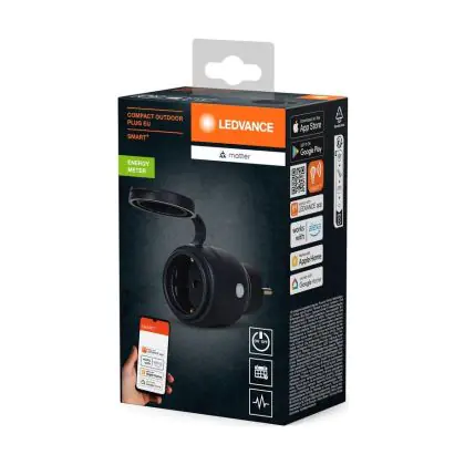 Der LEDVANCE Matter SMART+ Compact Outdoor Plug ist eine intelligente Steckdose, die es ermöglicht, herkömmliche elektrische Geräte in Ihr Smart-Home-System zu integrieren. Dank der Unterstützung des Matter-Standards ist sie kompatibel mit führenden Smart-Home-Plattformen wie Amazon Alexa, Google Assistant, Apple HomeKit und Samsung SmartThings.
