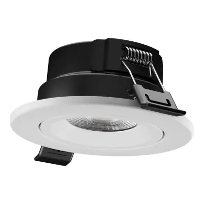 Der Ledvance Spot Combo Fire Rated Adjust MS Plastik Weiß 7W 840lm 60D - 860 Tageslichtweiß | Ausschnitt 80 - IP65 - Dimmbar ist ein LED-Einbaustrahler, welcher Licht in der Farbtemperatur 6000K - Tageslichtweiß ausstrahlt und durch eine lange Lebensdauer punktet. Die Einbauleuchte ersetzt konventionelle Halogenstrahler.