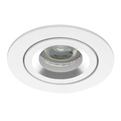Das Gehäuse aus weißem Aluminium hat einen Gesamtdurchmesser von 82 mm und einen Ausschnitt von 69 mm für den Einsatz des GU10-Leuchtmittels. Die Installationstiefe beträgt 75 mm. Das Produkt ist bis zu 40° schwenkbar und kann damit gezielt bestimmte Bereiche oder Objekte beleuchten.