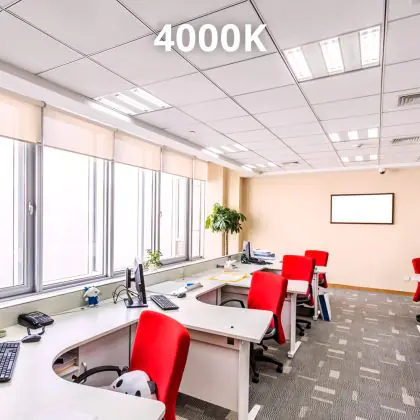 4.000 Kelvin bedeutet, dass das Licht in einer neutralen kaltweißen Farbtemperatur ausgestrahlt wird. Diese Lichtfarbe fördert das Sehvermögen und die Konzentrationsstärke.