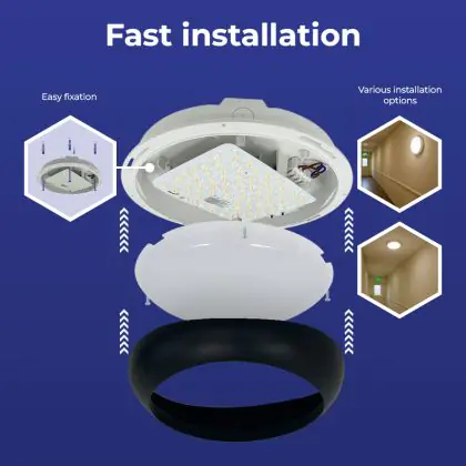 Beschreibung Noxion LED-Wand- und Deckenleuchte Pro V2 Weiß 12/16/20W 2400lm - 830-840-865 CCT | 325mm - IP65 - Not 3H + Ring Schwarz
