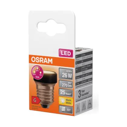 Die Osram LED Eben Lamp LED E27 Special Matt 3.5W 270lm - 827 Extra Warmweiß | 3-Stufen Dimmbar - Ersatz Für 25W ist eine effiziente E27 LED-Lampe und der perfekte Ersatz für Ihre konventionellen 25W Lampen mit E27-Sockel. Zudem strahlt sie Licht in der Farbtemperatur 2700K - Extra Warmweiß aus und punktet durch eine lange Lebensdauer.