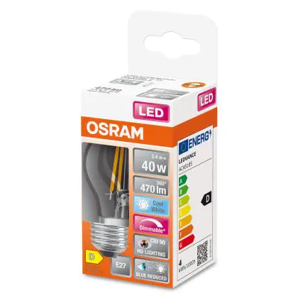 Beschreibung Osram LED Superstar E27 Kugel Fadenlampe Klar 3.4W 470lm - 940 Kaltweiß | Höchste Farbwiedergabe - Dimmbar - Ersatz Für 40W