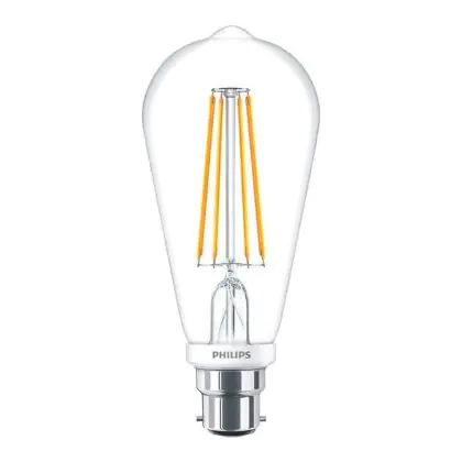 Die Philips Classic LED Glühbirne B22 Edison Fadenlampe Klar 7W 806lm - 827 Extra Warmweiß | Dimmbar - Ersatz für 60W ist eine effiziente B22 (Bajonettsockel) LED-Lampe mit Retrodesign und der perfekte Ersatz für Ihre konventionellen 60W Lampen mit B22 (Bajonettsockel). Zudem strahlt sie Licht in der Farbtemperatur 2700K - Extra Warmweiß aus und punktet durch eine lange Lebensdauer.