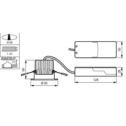 Beschreibung Philips Led-Spot RS155B CoreLine Aluminium Weiß 7.2W 750lm 36D - 830 Warmweiß | 85mm - Ausschnitt 68mm - IP20/65 - Dimmbar