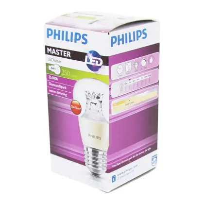 Die Philips MASTER LED Lustre E27 Kugel Krone Klar 2.8W 250lm - 822-827 Dim to Warm | Dimmbar - Ersatz für 25W ist eine effiziente E27 LED-Lampe und der perfekte Ersatz für Ihre konventionellen 25W Lampen mit E27-Sockel. Zudem strahlt sie Licht in der Farbtemperatur 2200K - 2700K Dim To Warm aus und punktet durch eine lange Lebensdauer.