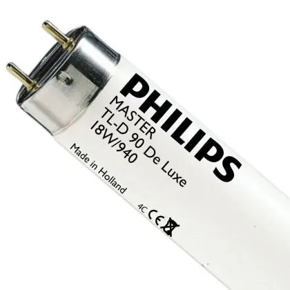 Die Philips TL-D 90 De Luxe 18W 940 (MASTER) überzeugt mit einem geringen Energieverbrauch von nur 18 Watt und mit einer neutralen kaltweißen Farbtemperatur.