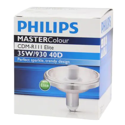 Die Philips MASTERColour GX8.5 CDM-R111 Elite 35W 40D - 930 Warmweiß | Höchste Farbwiedergabe ist eine Gasentladungslampe von Philips. Das Produkt mit einem GX8.5 Sockel strahlt Licht in der Farbtemperatur 3000K - Warmweiß aus und punktet durch eine lange Lebensdauer.